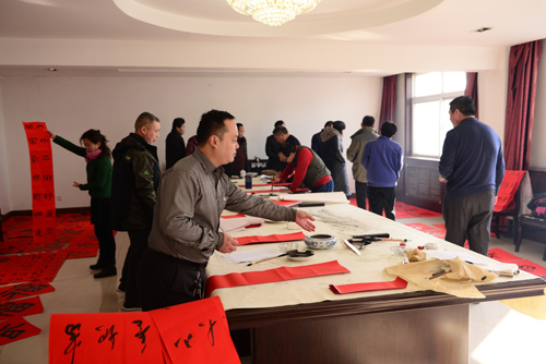 活动现场精彩纷呈,书法家们挥毫泼墨,一幅幅精美的作品应运而生,短短一上午时间,共书写创作春联及各类书法、绘画作品近200幅。“风光无限,无限风光”、“白鹤飞来万户寿,金鸡唤醒五湖春”、 “引来曙色随鸡舞;唤起春风催马驰”等,一幅幅火红的春联,一幅幅精美的书法作品,表达了书法家们对企业的深深祝福,一组组佳句名言,凝聚了济宁、汶上两地文艺界助推企业发展的文化力量。