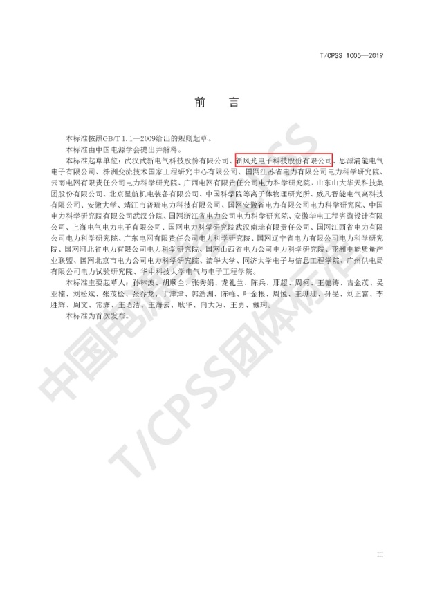 近日获悉,由中国电源学会组织发起,熊猫体育官方网站电子科技股份有限公司在内的多家知名电能质量治理企业、科研院所及高校等30家单位共同参与编制的团体标准—《中压链式静止无功发生器》T/CPSS1005—2019,于2019年8月1日正式实施。截止目前,熊猫体育官方网站公司先后主持并参与了16部国家、行业及团体标准的起草审定工作。