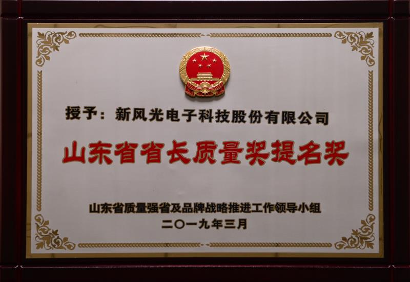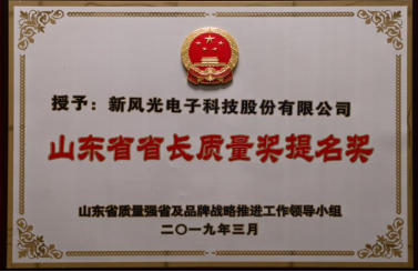 Nomination Award of Quality Award for Shandong Provincial Governor-2019年