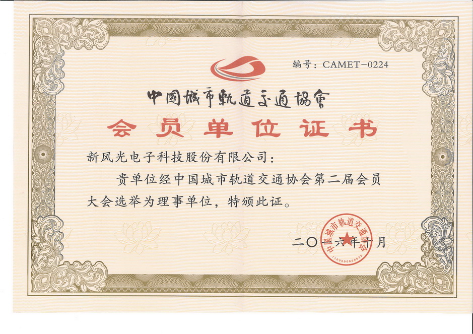 China Urban Rail Transit Membership Certificate