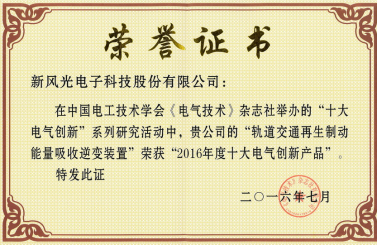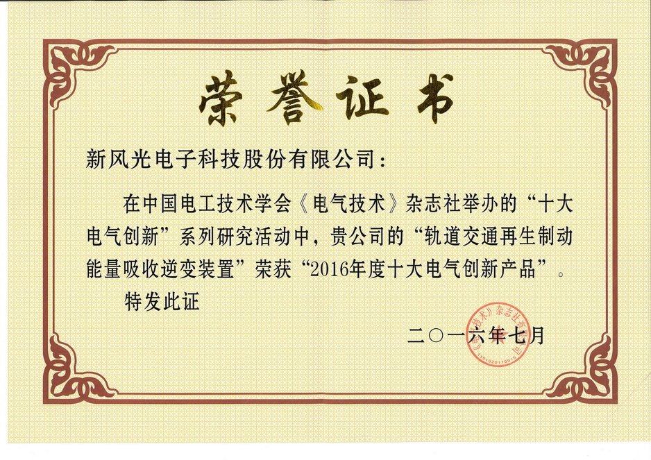 Top Ten Electrical Innovation Product Certificate