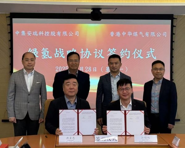 7月28日,中集安瑞科控股有限公司及其附属公司(统称“中集安瑞科”或“公司”,股份代号:3899.HK)与香港中华煤气有限公司(统称“香港中华煤气”,股份代号:0003.HK)签署战略合作协议,双方将围绕氢能及绿色甲醇的开发利用展开全面合作,共同推动香港绿色能源转型,助力国家“双碳”目标实现。 中集安瑞科执行董事、总裁杨晓虎与香港中华煤气行政总裁黄维义出席并见证了签约仪式。 共同拓展绿色甲醇新业务 此次中集安瑞科旗下的中集绿能低碳科技(广东)有限公司(以下简称“中集绿能”)、中集安瑞科工程科技有限公司(以下简称“中集工程”)与香港中华煤气旗下合资公司—广东臻为绿源投资有限公司(以下简称“臻为绿源”)共同签署了战略合作协议。协议内容主要聚焦绿色甲醇的技术合作工程服务、产业规范及碳交易合规等重点合作事项。 中集绿能建设并运营的绿色甲醇工厂,位于广东省湛江市,并即将在今年第四季度投产。工厂预计首期年产5万吨绿色甲醇,2027年达到20万吨产能;中集工程为项目提供了关键装置及工艺工程总包服务。 未来中集安瑞科将争取为臻为绿源的绿色甲醇项目提供核心装备、工艺及工程服务支持。合作各方将共同探索绿色甲醇相关的新技术应用与推广;同时依托香港国际化优势联合推动国际绿色能源转型的实践探索,为香港构建符合国际规则的碳市场规则、提升全球绿色能源话语权共同献策。 与中华煤气强强联合,共拓氢能新机遇 中集安瑞科于同日与香港中华煤气有限公司签署绿氢项目战略合作协议,双方就氢能项目在香港特别行政区的进一步开发利用达成合作意向,双方将围绕氢气的提纯、储存及利用场景开展全面合作。 香港中华煤气是香港规模最大的能源供应商之一,拥有覆盖全港的3700公里地下管网,每年为全港市民提供生活能源服务。为响应全球碳中和趋势,香港中华煤气正加速向绿色能源转型,积极探索清洁能源替代方案。 根据协议,双方将基于香港中华煤气的富氢燃气资源,共同开发高效提氢与存储技术,探索低碳及可再生能源的利用模式,并拓展氢能在交通运输、充电桩等领域的应用,同时推动零碳场景的深度合作。